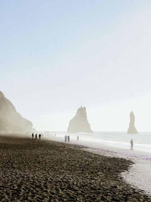 Translating to Djupalon Beach, the black lava pearl beach is a beautiful place to visit with its black sand and series of rocks of mysterious form emerging from the ocean.